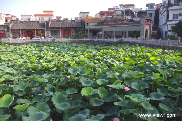 顺德陈村文海松庄仇公祠前荷塘花开