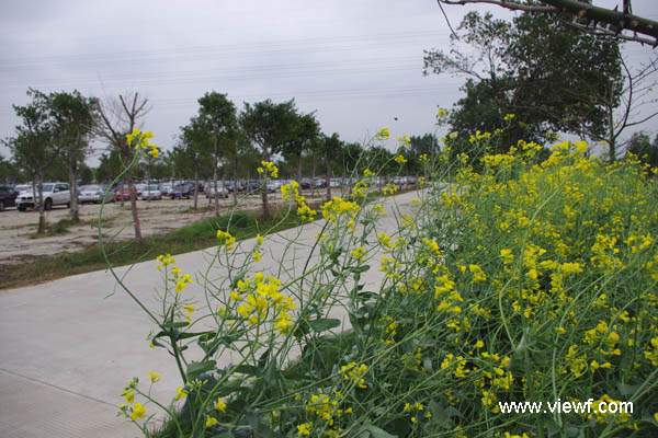 事实上,在生态园景区外面的一侧,进去时的左手边,停车场的边沿,也有一片油菜在开花,而且开得也不错。