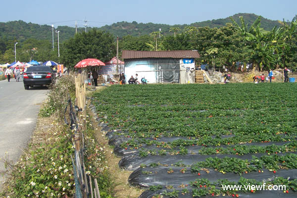 位于广州萝岗香雪公园正对面的草莓园已有比例不少的草莓成熟,开放给游客自行采摘购买。