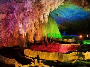 宝晶宫是一个经历了两亿多年地壳变化而成的大溶洞,位于燕子岩山腹中1981年8月,被广东省水文地质二队在寻找水力资源过程中发现的。洞内重叠共有四层,下洞中主洞,于1984年春节起,向游人开放。中洞和上洞亦于1986年相继开放。最底洞为冲积层,洞低矮,还有积水,不利于通行,故仍未开放游览。巳开放供游览的三层,总面积约16500平方米,游程约1.5公里,是广东省巳开放的溶洞中规模最大的一个。洞内高大宽阔,雄伟壮观,石笋、石柱林立,石花、石幔千姿百态,石钟乳玲珑剔透,绚丽多姿,有的象花鸟虫鱼,有的象飞禽走兽,有的象神仙佛祖,有的象天池飞瀑。整个洞穴如宫殿般,故被称为宝晶宫。 |