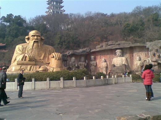 太湖仙岛原名三山,俗称乌龟山。位于梅梁湖中,距鼋头渚2.6公里。它是太湖七十二峰中的著名山峰,面积12公顷,实际上由4个小山峰组成。    头尾二山名“东鸭、西鸭”,主山名“三峰”,另一小峰无名。主山高49.8米。五十年代始进行开发,造桥、建亭、绿化;七八十年代建耸翠楼,山顶建文徵明诗碑亭、东建“点鸥亭”等;1990年辟为猴岛,现在已成为“太湖仙岛”。    太湖仙岛,展示着古老的道教文化和神话色彩,分洞天福地和天都仙府等景区,中有古朴凝重、亭廊连结的会仙桥,会仙桥北的西鸭山,为洞天福地游览区,耸立着精雕细缕的“太湖仙岛”大牌坊,汉白玉浮雕影壁“玉帝巡天回銮图”。有专供猴子栖息和表演猴艺的花果山、水帘洞、演艺场,还装点着“神猴出世”、“齐天大圣牙旗”、“花果山石碣”,重现著名的古典小说《西游记》中的情景。主峰为天都仙府,内设天门天街、天都仙府、药王、文王、财神殿、灵宵宝阁、蟠桃瑶池、月老祠、太乙天坛等。天街上商店鳞次栉比,古色古香。仙桃形、石榴形、葫芦形等雕花门窗,玲珑多姿,恍若仙景。天都仙府的主体建筑占地1320平方米,主楼三层五重檐,歇山顶,高22米,内设文昌、关帝、妈祖殿宇,两侧有六十花甲元辰廊。灵霄宫,七层四角,高38米,塑有玉帝神像。大觉湾,仙人洞,汇集着中国佛教、道教石窟艺术。其它还有祭天台、月老祠、鸳鸯亭等不少景点。    三山以孤见奇,以小取胜,若翠螺置于玉盘之中,林木葱茏,山径深邃,景观开阔,文徵明诗碑中的《太湖》诗云: 岛屿纵横一镜中,湿银盘紫浸芙蓉。 谁能胸贮三万顷,我欲身游七十峰。 天远洪涛翻日月,春寒泽国隐鱼龙。 中流仿佛闻鸡犬,何处堪追范蠡踪。 |