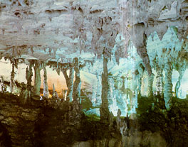 岩洞共分成八个单元,即六洞天(洞中世界)、两洞府(神仙府第)。洞中有洞,连环套叠,变化莫测。色彩缤纷、千奇百怪的钟乳石,结成多种山川人物、树木禽兽,瑰丽多姿,琳琅满目。